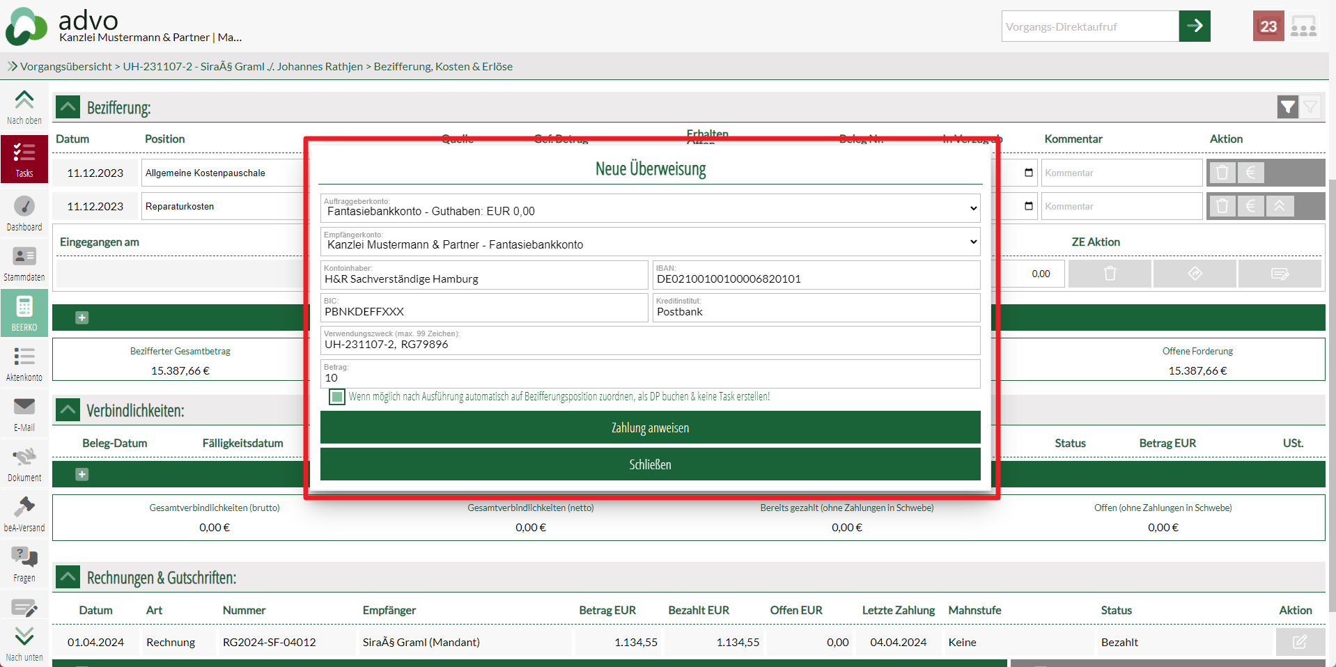 Info: In Kürze wird eine überarbeitete Version unseres Bankmoduls verfügbar sein, die es ermöglicht, Zahlungen direkt an Ihre Bank zu übertragen, ohne manuell eine Datei einlesen zu müssen.